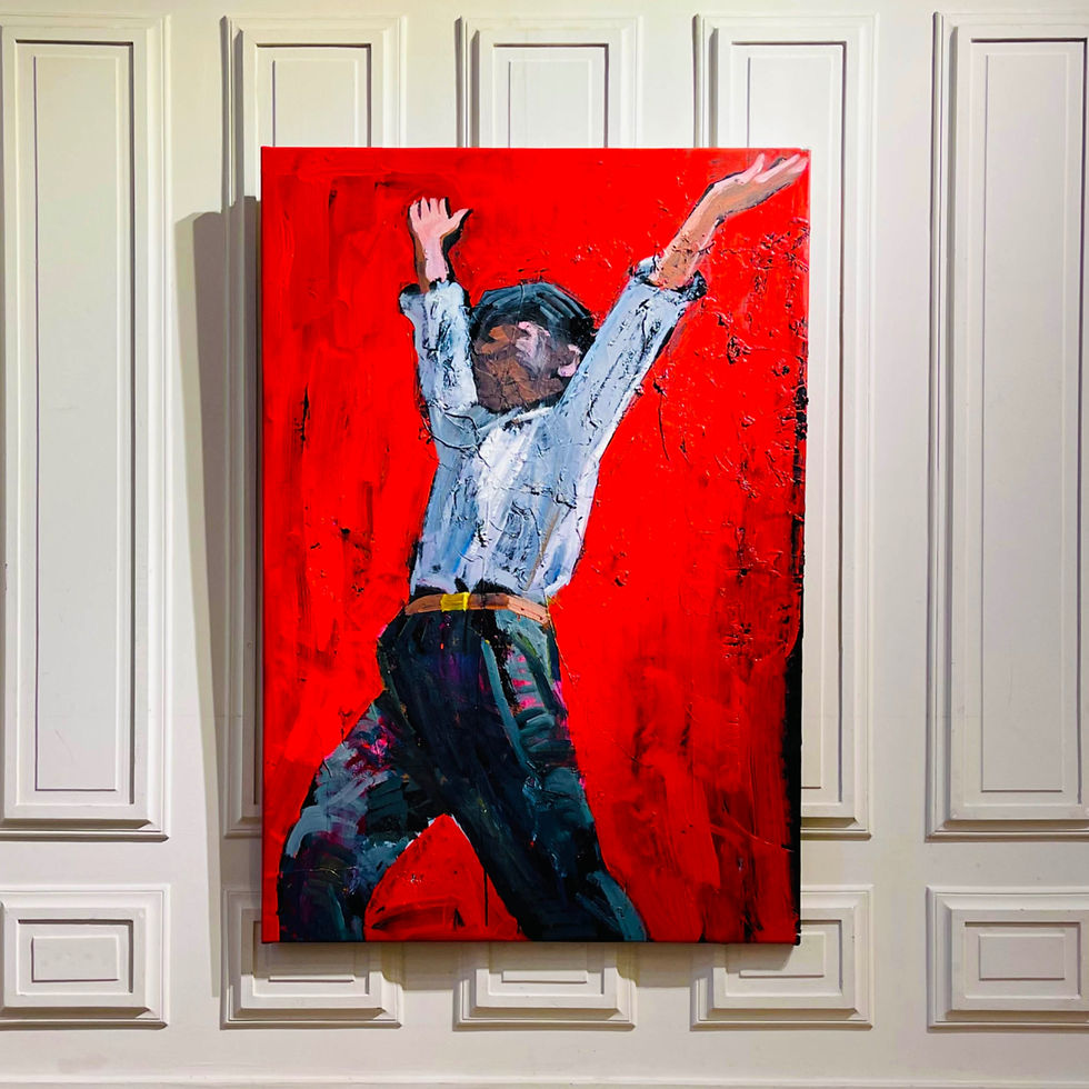 The influences acknowledged by the artist reveal a thought rooted in the Western pictorial tradition while simultaneously subverting it. Echoes of Francisco Goya appear in the grotesque, the fantastic, and social critique; those of Francis Bacon in the distortion of bodies and psychological intensity; and those of Henri Matisse in the construction of bodily rhythm—though inverted, where chromatic joy becomes a cold tension. LU Hang does not quote; he reformulates, transposes, and shifts these inheritances in order to give them a universal and contemporary resonance.